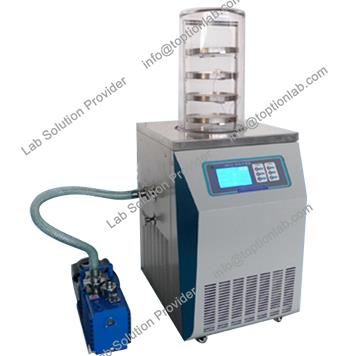 12 oed TOPT gwresogi gwactod yn y fan a'r lle yn rhewi sychwr serieslyophilizerare bach i rewi fertigol peiriant sychu. Peiriant fertigol rhewi gwactod sychu mathau hyn wedi swyddogaeth gwresogi a rhaglenadwy silff.