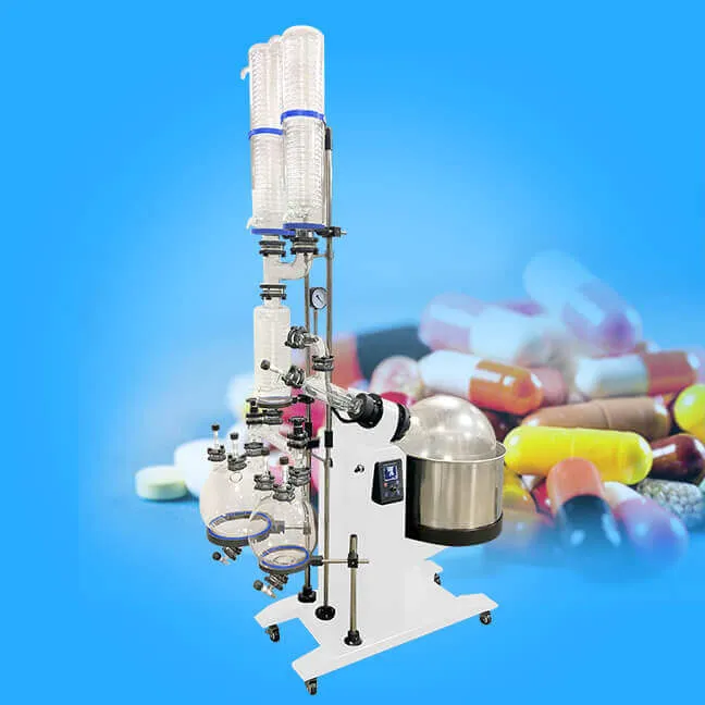 Evaporator Rotari yw'r defnydd o bwysau gwactod, tymheredd cyson a gwresogi amodau, gan ddefnyddio cylchdro cylchdroi botel cyflymder cyson, yn ffurfio ffilm tenau ardal fawr, gosodiadau offer anweddiad uchel.